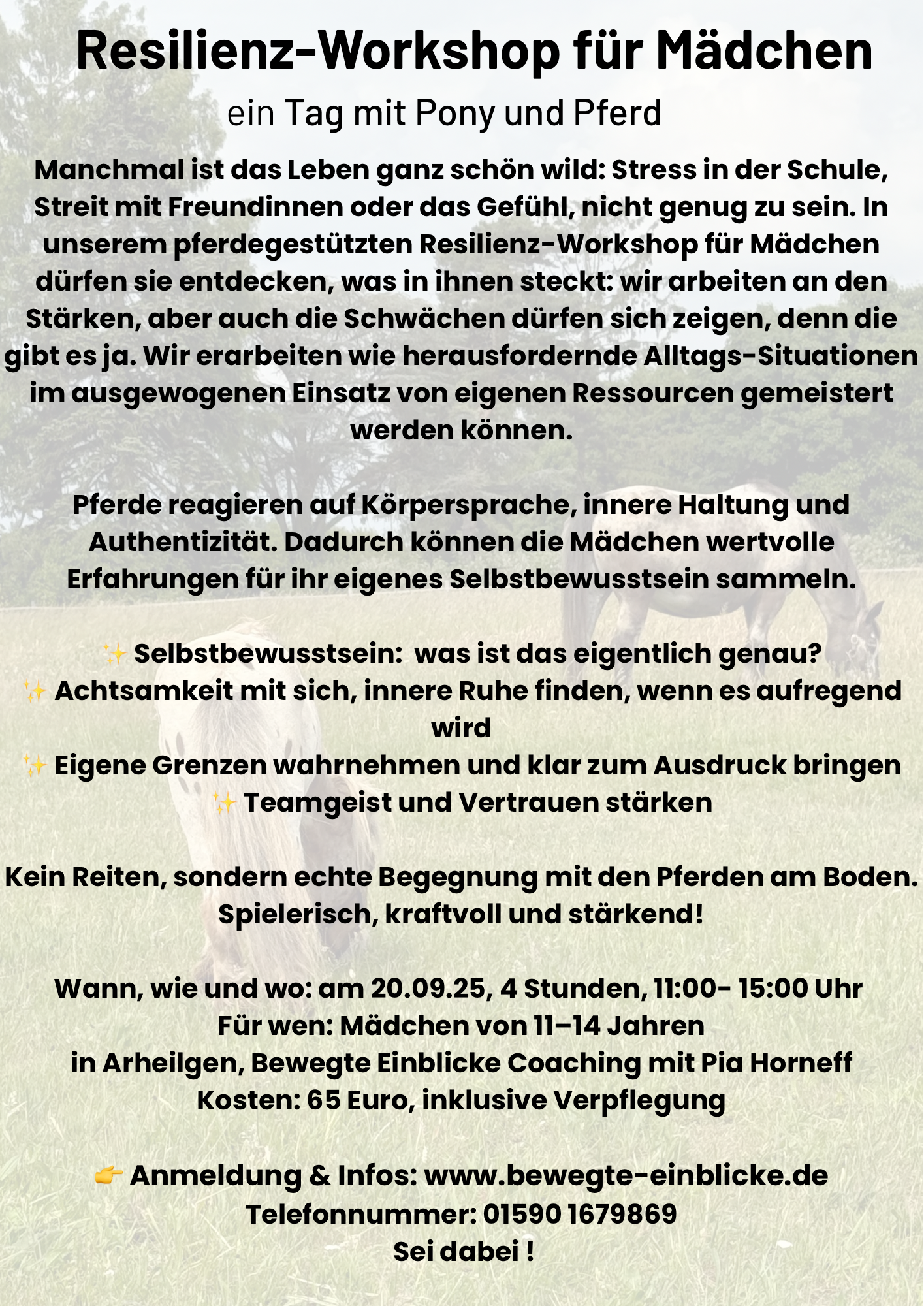 Ich freue mich sehr darüber, dass ich im Oktober in Freiburg mit einem Stand bei der Messe "Leben und Tod" dabei sein darf. Dort werde ich mein Angebot "Trauerbegleitung mit Pferden" vorstellen. Hierbei geht es mir vor allem um die Wirksamkeit im Kontakt zu Pferden. Ich freue mich über Besucher:innen an meinem Stand und all...